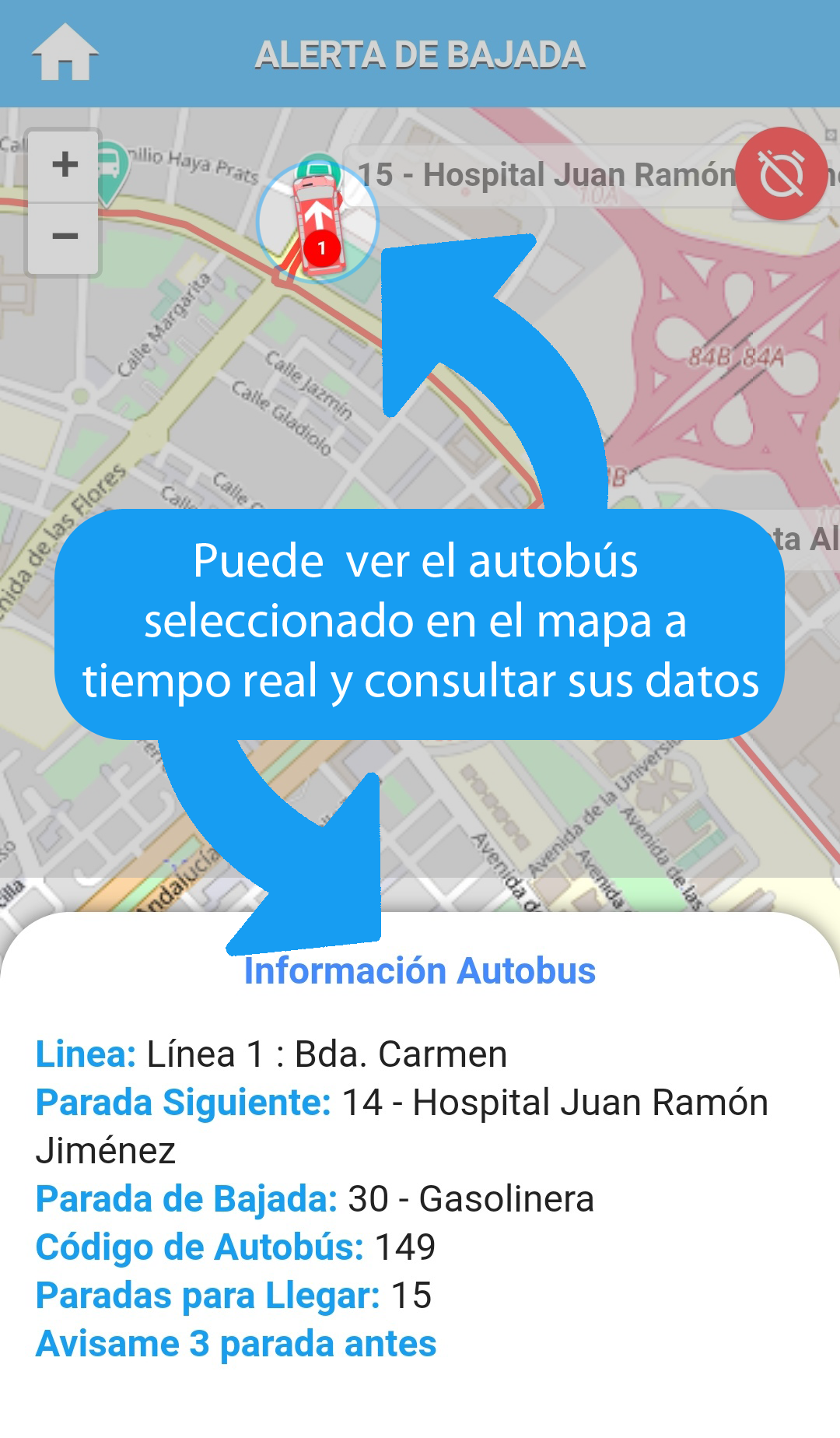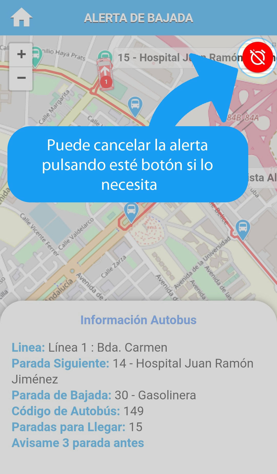 Crea una alarma para saber cuando debes bajarte.